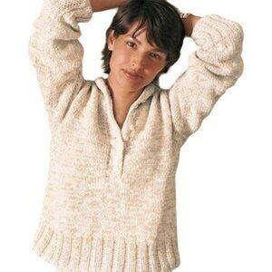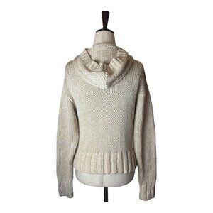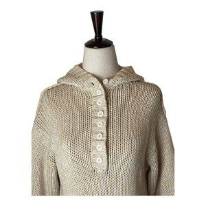 Soft Surroundings Beige Cotton Button Front Hooded Knit Pullover Sweater Size S