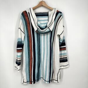 Soft Surroundings Bimini Knit Hoodie Sweater Medium Blue Striped Cotton Pullover