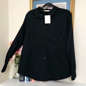 Soft Surroundings Black Button Down Classy Sophisticated Pitch Black Color