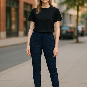 Soft Surroundings Black Floral Blue Ponte Pull On Illusion Pants