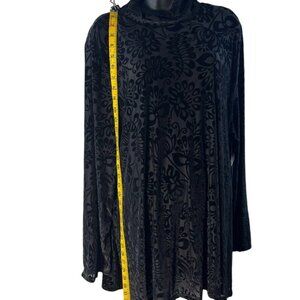 Soft Surroundings Black Floral Burnout Velvet Tunic Top With Crystal Button Cuff
