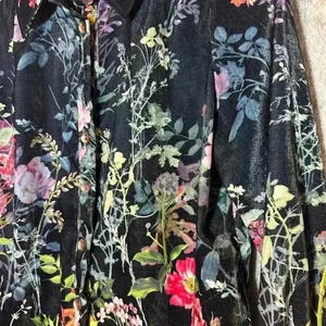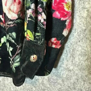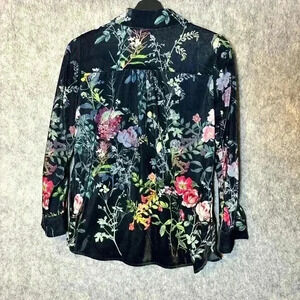 Soft Surroundings Black Floral Button Down Long Sleeve Velour Shirt - PS