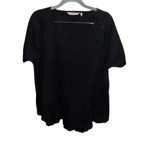 Soft Surroundings Black Gauzy Short Sleeve Top Size Medium