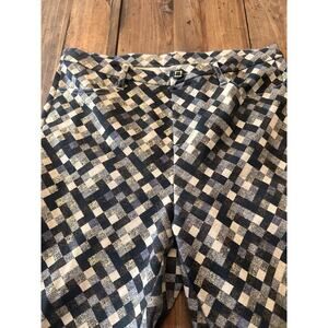 Soft Surroundings Black Gold Geometric Design Pants Size Medium Button Office