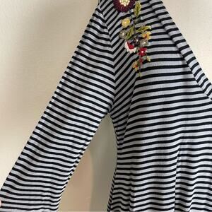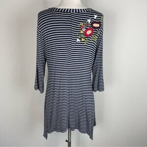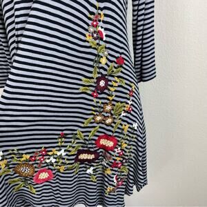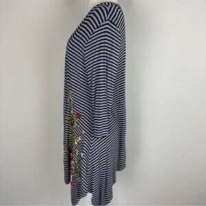 Soft Surroundings Black & Gray Stripe Knit Embroidered Tunic Medium