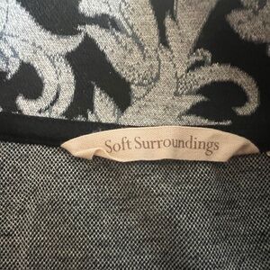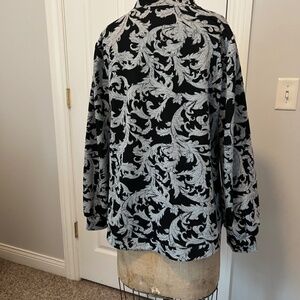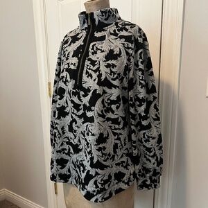 Soft Surroundings Black Grey Swirls Floral Dressy Pullover 1/4 zip L