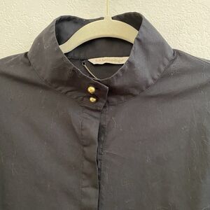 Soft Surroundings Black High Collar Tunic Button Up Blouse Top M