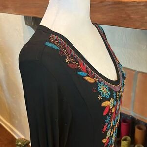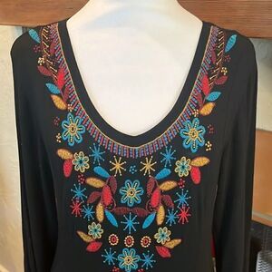 Soft Surroundings Black Long Sleeved Embroidered Maxi Dress, PS!