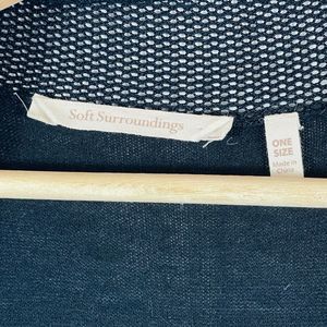 Soft Surroundings Black Mesh Knit Open Cardigan Sweater Vest Topper. Womens One Size.