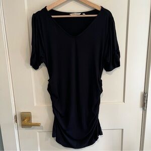 Soft Surroundings Black Ruched Short Sleeve Jersey Knit Tunic Large