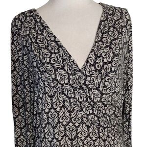Soft Surroundings Black White Faux Wrap Front Jersey Knit Maxi Dress Size Medium