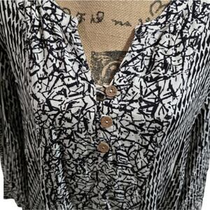 Soft Surroundings Black & White Ikat Raven Dress 3/4 Sleeve Womens Plus Size 1X