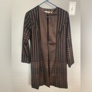 Stonehaven duster jacket. Elegant long coat with plaid pattern. Perfect for layering. Size small