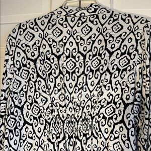 Soft Surroundings Black and White Notched Collar Blouse with Back Elastic Size L