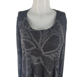 Soft Surroundings BlackGray Floral Long Sleeve Long Line Sweater M