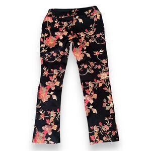 Soft Surroundings Black/Red Print Stretch Dress Pants S