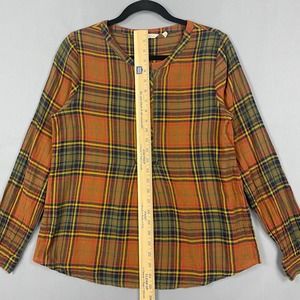 Soft Surroundings Shirt Womens Medium Brown Plaid Knit Long Sleeve Semi Sheer