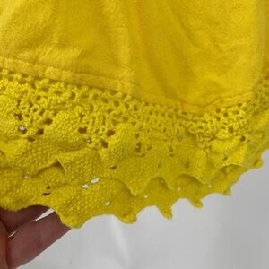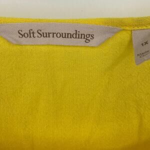 Soft Surroundings Blouse Size 1X Yellow Textured Weave Cotton Crochet Trim Top