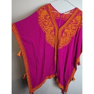 Soft Surroundings Blouse Womens S/M Magenta Embroidered Topper Kimono Catalpa Tunic Beaded