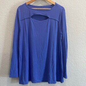 Soft Surroundings Blue Beckett Long Sleeve Top with Keyhole Size Large