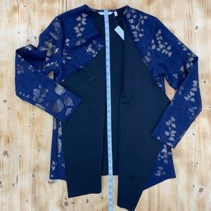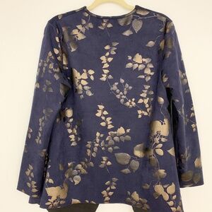 Soft Surroundings Blue & Bronze Floral Moleskin Open Front Jacket Topper Sz M