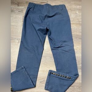 Soft Surroundings Blue button ankle snap pants. No size but measurements in the photos. Has a couple small spots on back- haven’t tried to remove. SEE ALL PHOTOS- I include approximate measurements of items in the pictures and fabric content and tags. Bundle up on several items and save even more. Just message me and I will bundle up with a discount on items and shipping! I try my best to include a full description and let you know of any issues I see. I only accept returns for items that have something I missed with it. I do not take returns for sizing issues or for simply not liking the item. But if there is something I missed, I will most def return. Usually try and ship next day but if you choose UPS it can take up to a few days for it to be sent off. I post new items daily! If you like what you see, give me a follow so you can be alerted when new items drop!