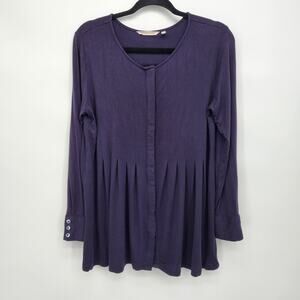 Soft Surroundings Blue Button down Oversized Lagenlook Pleated Tunic Women's S