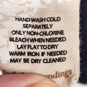 Hand wash cold/ lay flat dry/ warm iron as needed/ or dry clean