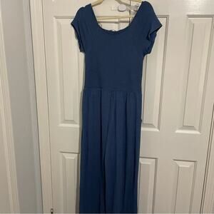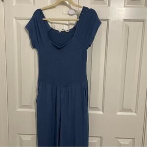 Soft Surroundings Blue Chambray Smocked Wide Leg Cropped Jumpsuit M