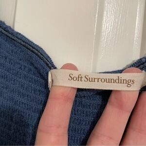 Soft Surroundings Blue Chambray Smocked Wide Leg Cropped Jumpsuit Womens M