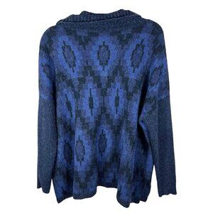 This Soft Surroundings sweater is a cozy and stylish choice for various occasions. Made from a blend of wool and alpaca, this pullover tunic features a cowl neck and long sleeves, perfect for the colder seasons. The relaxed fit and oversized style provide a comfortable and breathable feel, making it ideal for travel, casual outings, or workwear. In a beautiful blue color, this lightweight sweater has a bohemian and classic theme, adding a touch of sophistication to your wardrobe. Perfect for winter, fall, or spring, this sweater is a versatile and timeless piece.