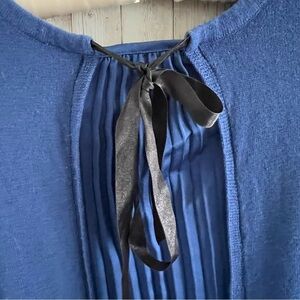 New with tags. A light crewneck sweater with pleated back detail. Really pretty to pair with fun bottoms. New, size XS