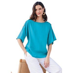 Soft Surroundings Blue Danube Andrea Linen Blend Pullover Medium