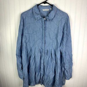 Soft Surroundings Blue Denim Pleated Button down Top Size XL