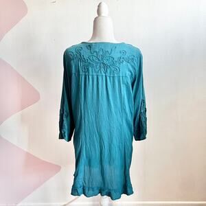Soft Surroundings Blue Embroidered Tunic Top Boho Cottagecore Artsy Medium