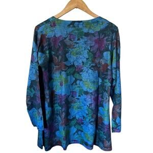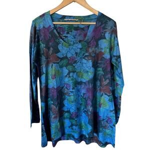 Soft Surroundings Blue Floral Lightweight Tunic Length Sweater PM