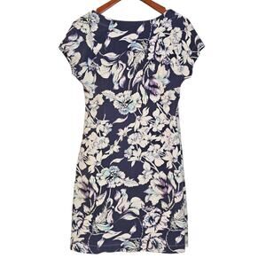 Soft Surroundings Blue Floral Shapely Anywhere Ruched Surplice Faux Wrap Dress