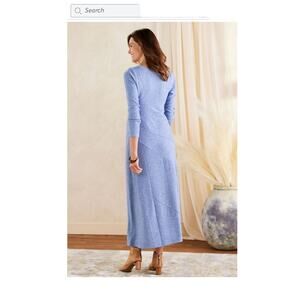 Soft Surroundings Blue Heather Clio Modest Midi Textured Dress, Sz Petite Small