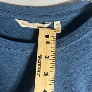 Discover effortless style with this Soft Surroundings blue heathered long sleeve tunic top. The relaxed fit and soft fabric create a comfortable silhouette, while the unique white lace inset at the zippered side vents adds a touch of delicate charm and subtle flair. This versatile top is perfect for a casual day out, a relaxed brunch with friends, or a comfortable travel ensemble.