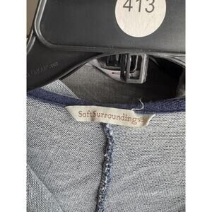 Soft Surroundings Blue Highland Ruched Denim Zip-Up Hooded Jacket Size Medium