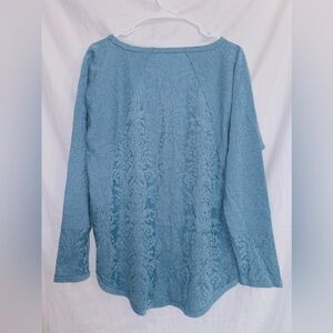 Soft Surroundings Blue Long Sleeve Floral Detail Top size large