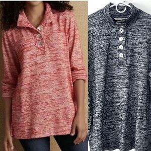Soft Surroundings Blue Marled Mother of Pearl Touchable Pullover Sweater