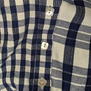 Soft Surroundings Blue White Plaid Textured Huntleigh Lagenlook Buttons Tunic Top Fall Pumpkin Patch Flannel Cottage Cottagecore Artsy XS