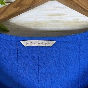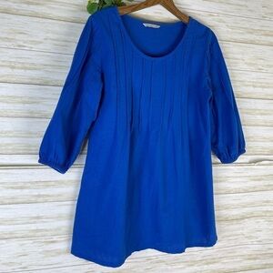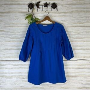 Soft Surroundings Blue Pleated Cotton Long Sleeve Peasant Style Tunic