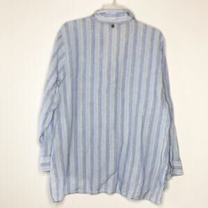 Soft Surroundings Blue Stripe Linen Button Up Top Shirt Blouse