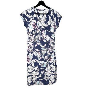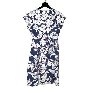 Soft Surroundings Blue Surplice Neckline Short Sleeve Floral Knee Length Dress XS