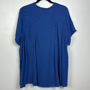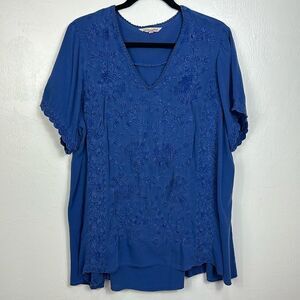 Soft Surroundings Blue Viscose Floral Embroidery Short Sleeve Top Size 2X