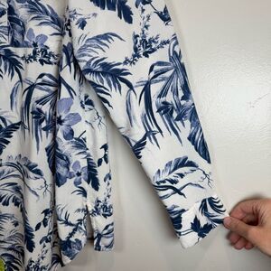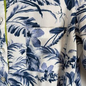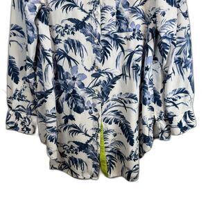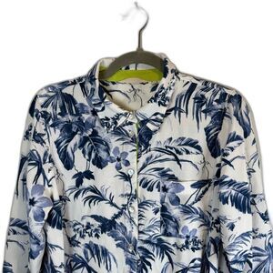 Soft Surroundings Blue White Tropical Long Sleeve Shirt Size Large