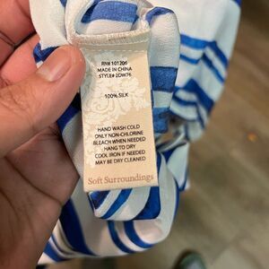 Soft Surroundings Blue and White Silk Tie Front Shirt Small