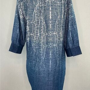 Soft Surroundings Blue Brigitte tunic style blouse. Size medium. In good preowned condition. No stains. Fun white and blue ombré pattern. Armpit to pit measures 21 inches. Hi lo. Top of shoulder down front 28 inches. Down back 32 inches. Comes from a smoke free home.